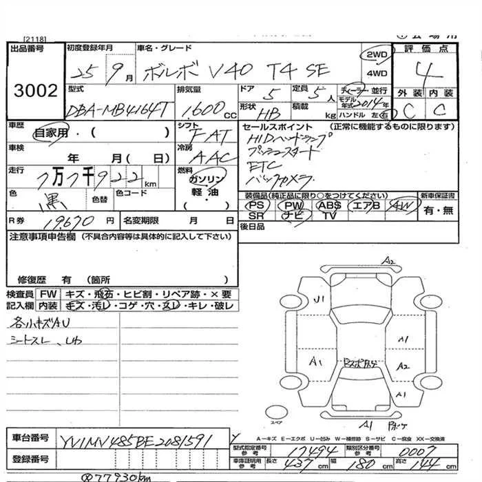 Volvo V40 с аукциона Японии JU Nagano лот № 3002