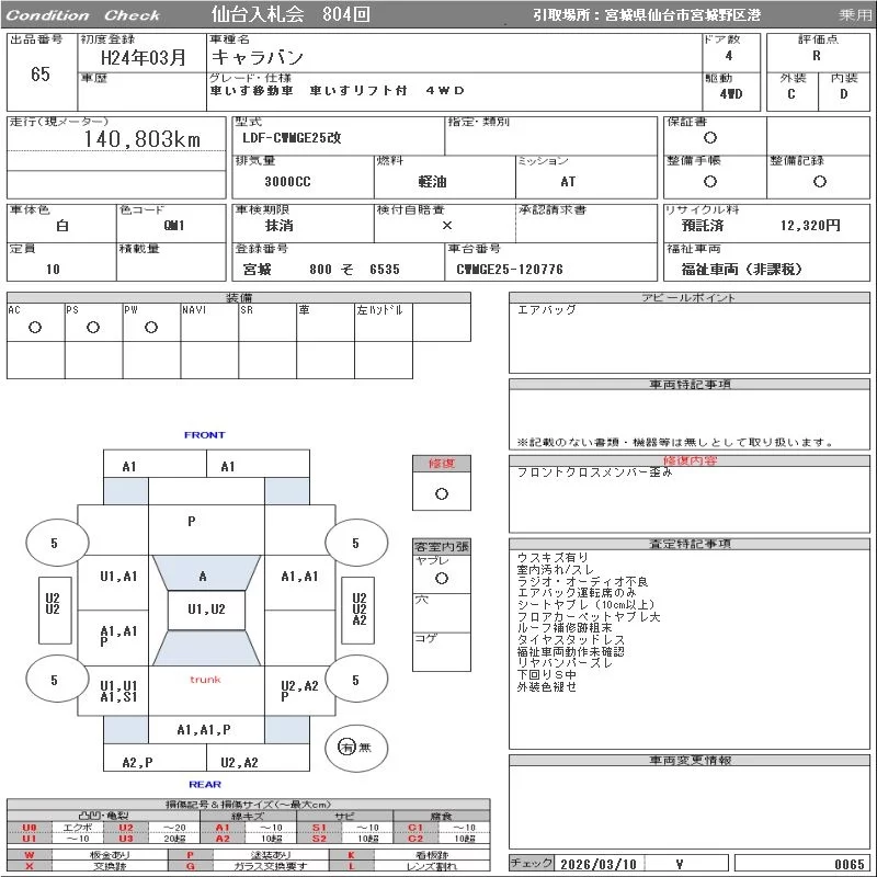 Nissan CARAVAN VAN с аукциона Японии ORIX Sendai Nyusatsu лот № 65