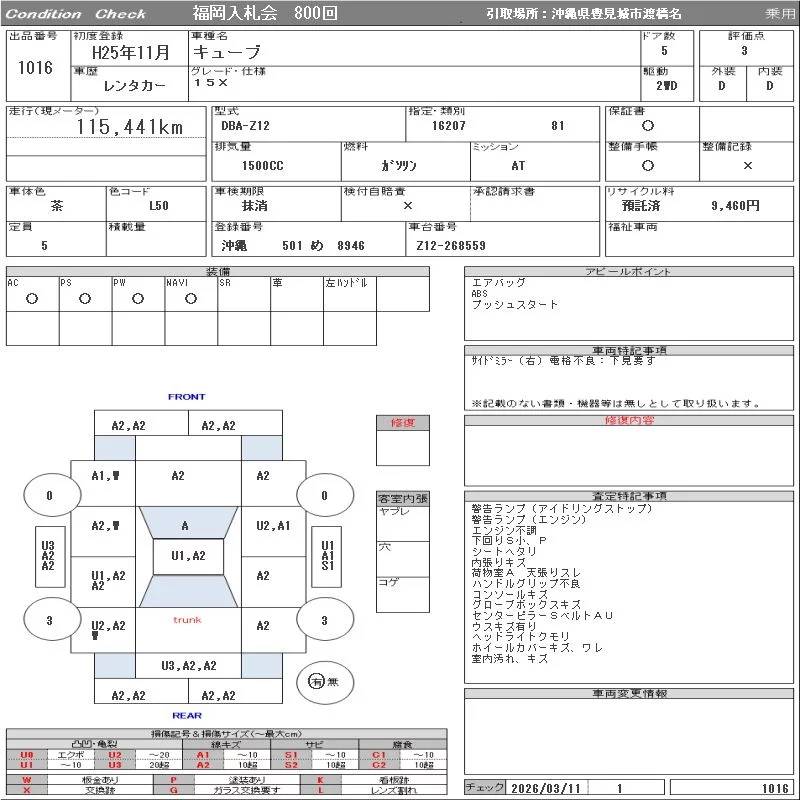 Nissan CUBE с аукциона Японии ORIX Fukuoka Nyusatsu лот № 1016