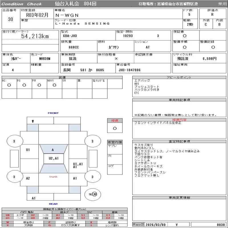 Honda N WGN с аукциона Японии ORIX Sendai Nyusatsu лот № 30