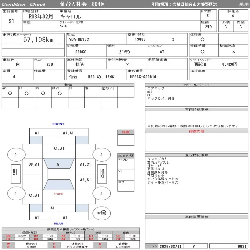 Mazda CAROL с аукциона Японии ORIX Sendai Nyusatsu лот № 91