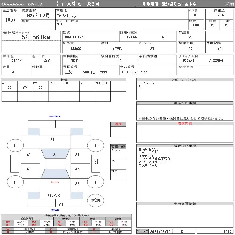 Mazda CAROL с аукциона Японии ORIX Kobe Nyusatsu лот № 1007