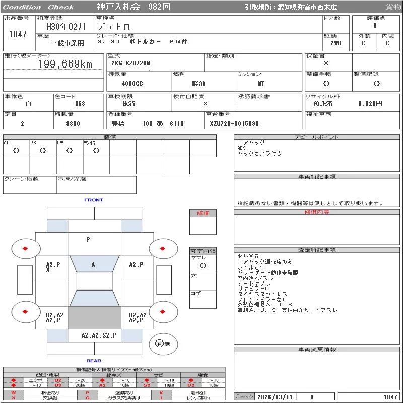 Hino DUTRO с аукциона Японии ORIX Kobe Nyusatsu лот № 1047