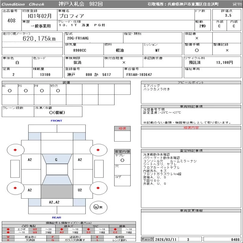 Hino PROFIA с аукциона Японии ORIX Kobe Nyusatsu лот № 408