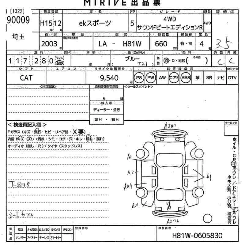 Mitsubishi EK SPORTS с аукциона Японии MIRIVE Saitama лот № 90009