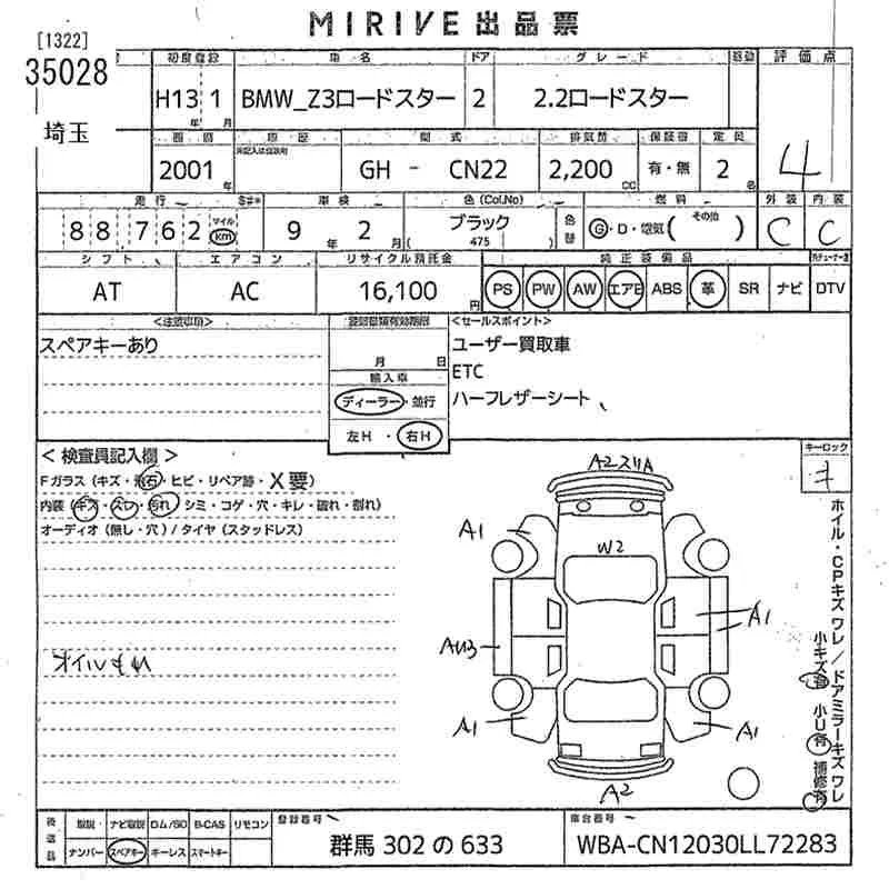 BMW Z3 SERIES с аукциона Японии MIRIVE Saitama лот № 35028
