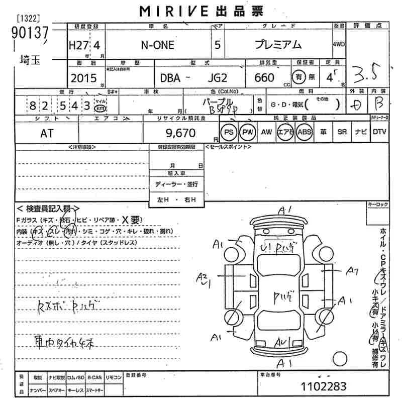 Honda N ONE с аукциона Японии MIRIVE Saitama лот № 90137