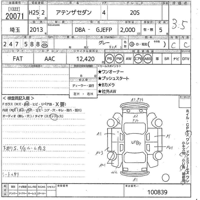 Mazda ATENZA SEDAN с аукциона Японии MIRIVE Saitama лот № 20071