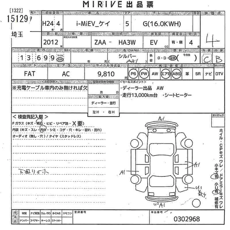 Mitsubishi I-MIEV с аукциона Японии MIRIVE Saitama лот № 15129
