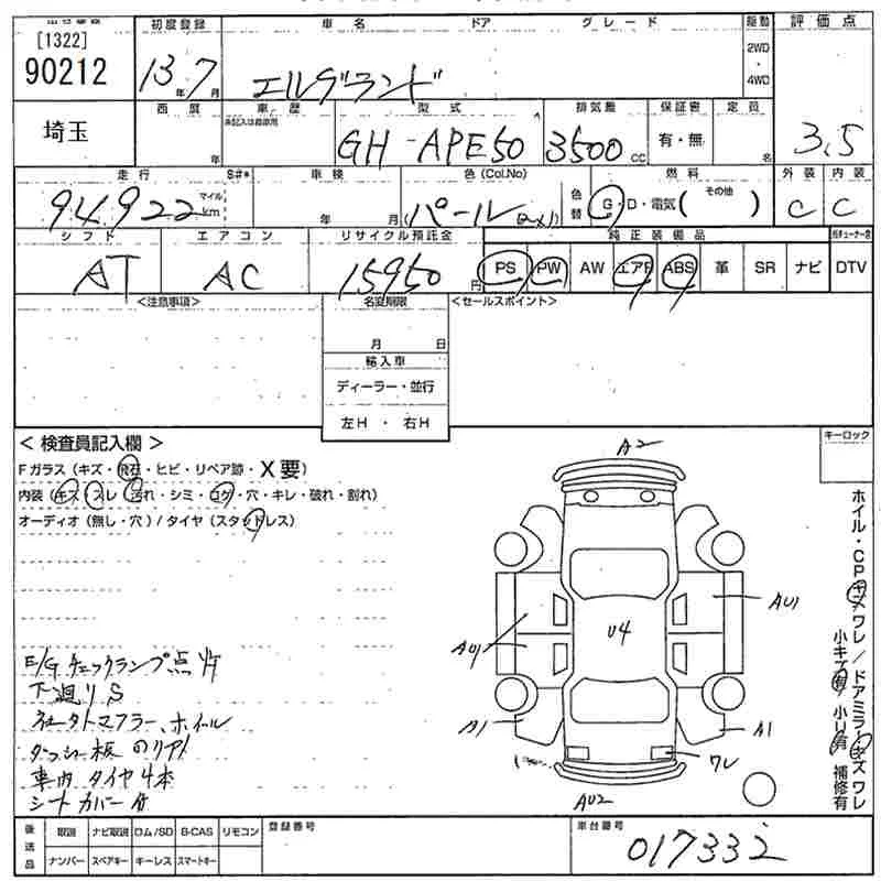 Nissan ELGRAND с аукциона Японии MIRIVE Saitama лот № 90212
