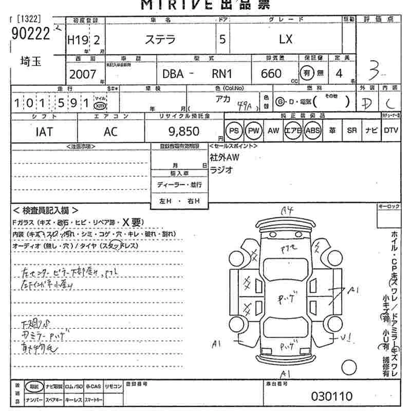 Subaru STELLA с аукциона Японии MIRIVE Saitama лот № 90222