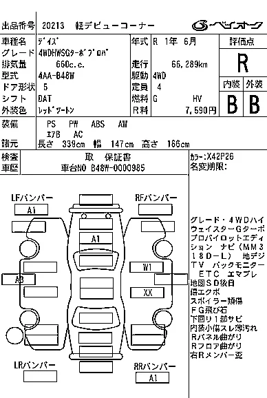 Nissan DAYZ с аукциона Японии BAYAUC лот № 20213
