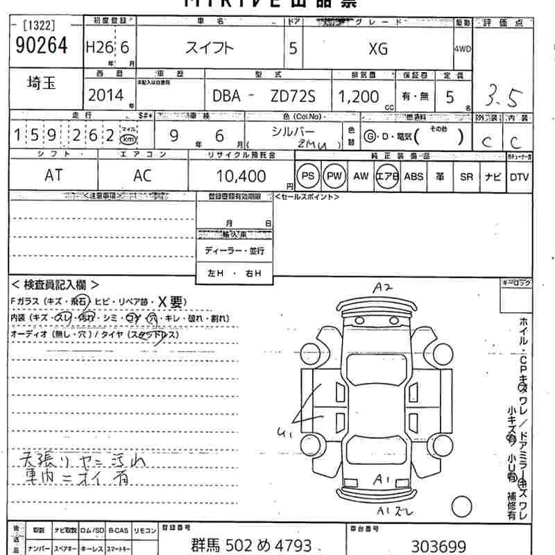 Suzuki SWIFT с аукциона Японии MIRIVE Saitama лот № 90264