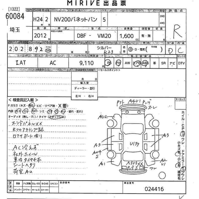 Nissan NV200 с аукциона Японии MIRIVE Saitama лот № 60084