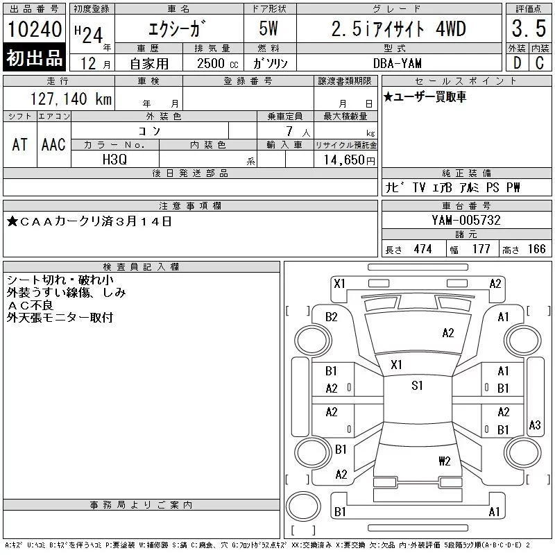 Subaru EXIGA с аукциона Японии CAA Chubu лот № 10240