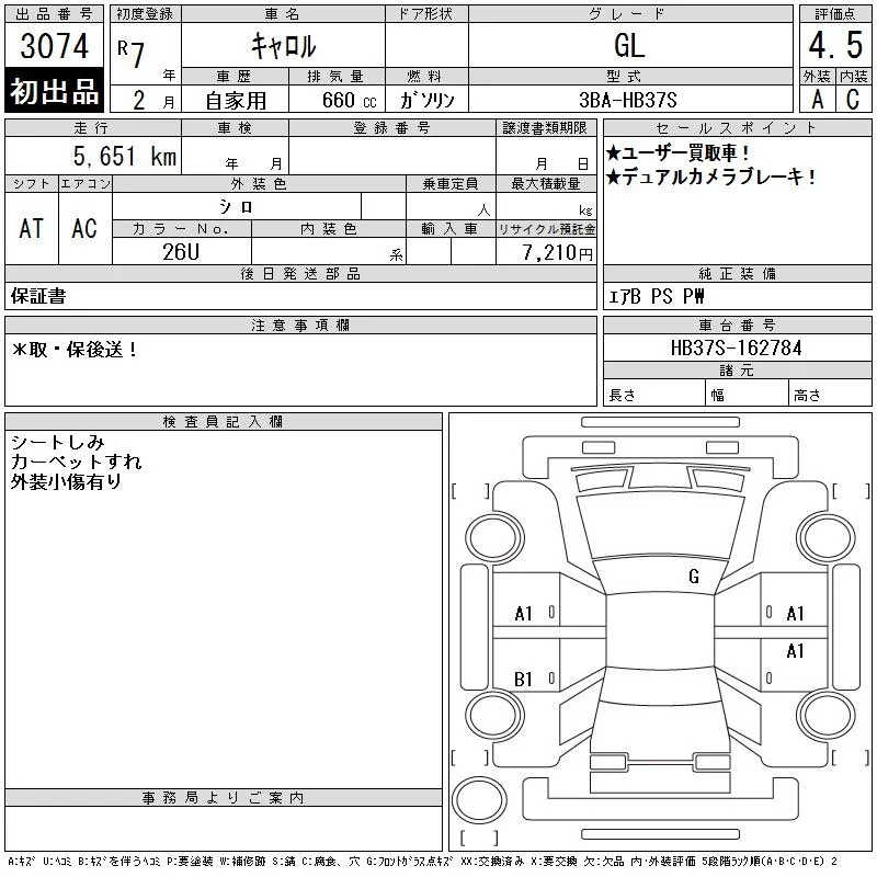 Mazda CAROL с аукциона Японии CAA Chubu лот № 3074