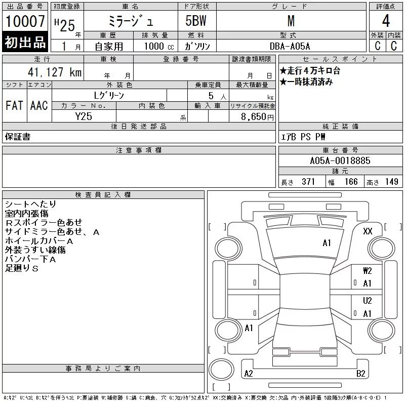 Mitsubishi MIRAGE с аукциона Японии CAA Chubu лот № 10007