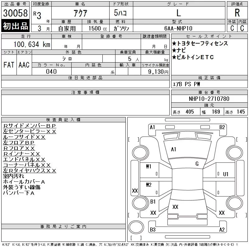 Toyota AQUA с аукциона Японии CAA Chubu лот № 30058