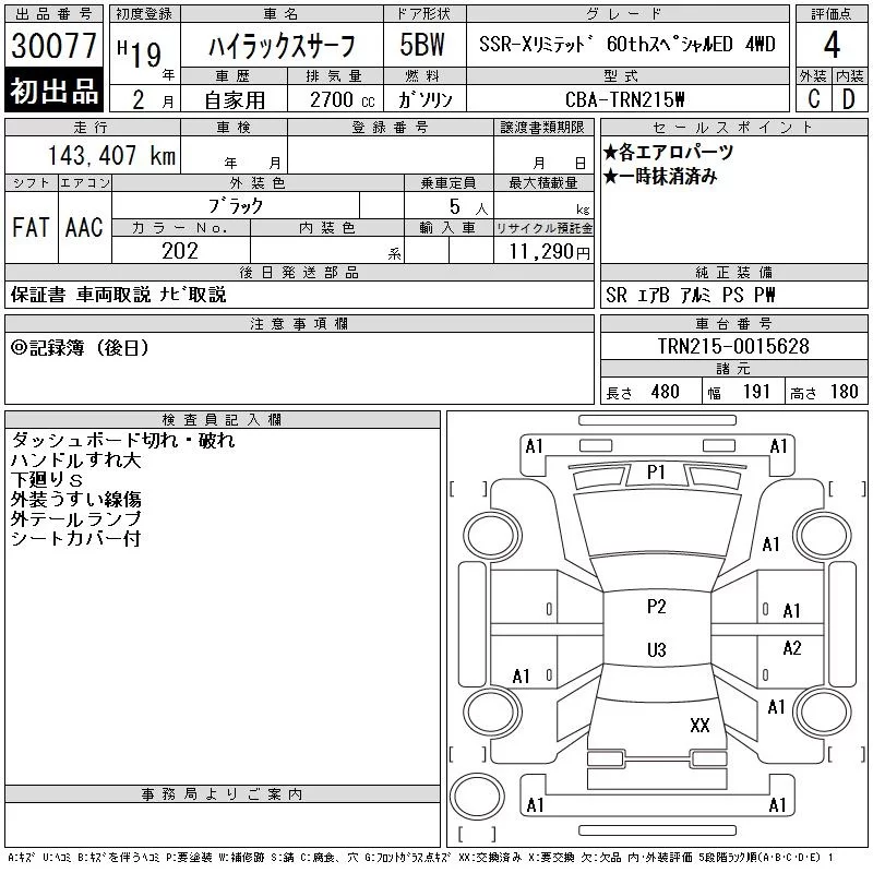 Toyota HILUX SURF с аукциона Японии CAA Chubu лот № 30077
