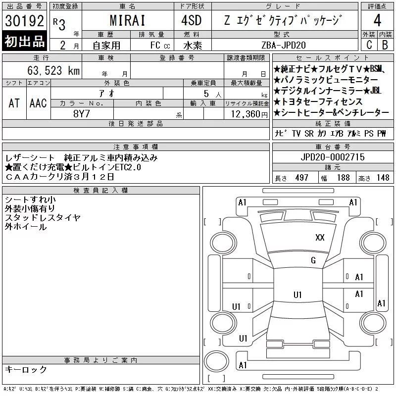 Toyota MIRAI с аукциона Японии CAA Chubu лот № 30192