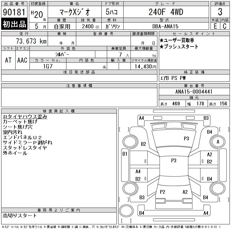Toyota MARK X ZIO с аукциона Японии CAA Chubu лот № 90181