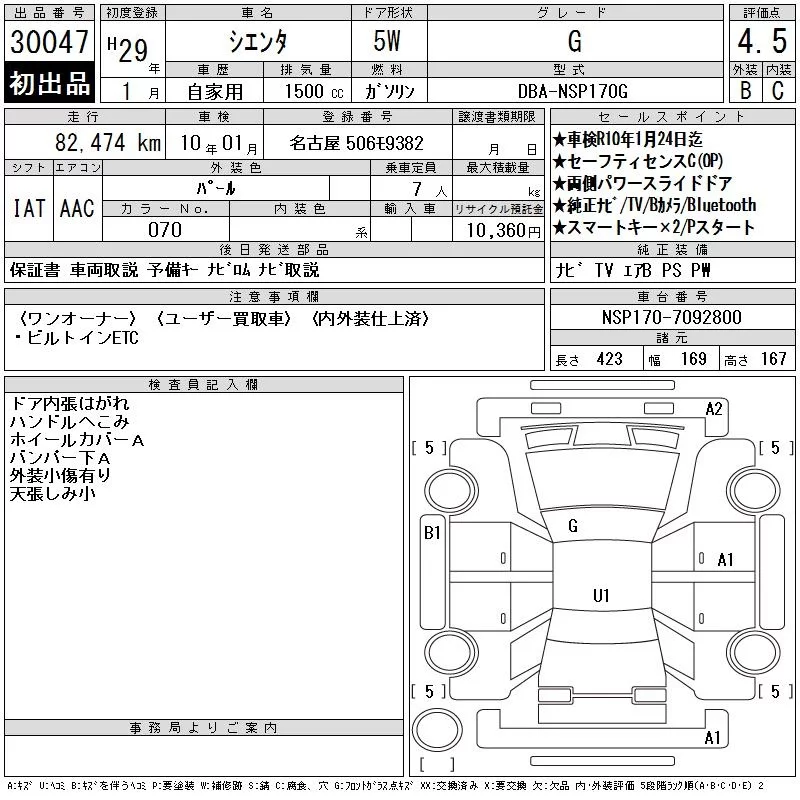 Toyota SIENTA с аукциона Японии CAA Chubu лот № 30047