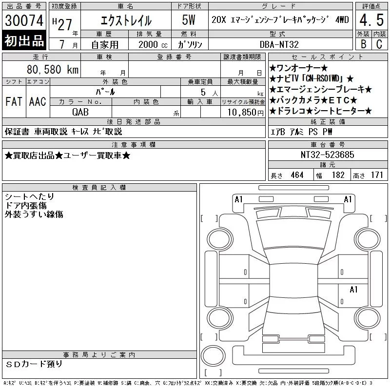Nissan X-TRAIL с аукциона Японии CAA Chubu лот № 30074