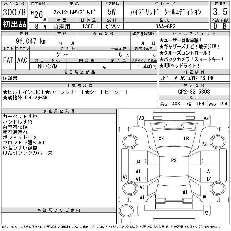 Honda FIT SHUTTLE с аукциона Японии CAA Chubu лот № 30078