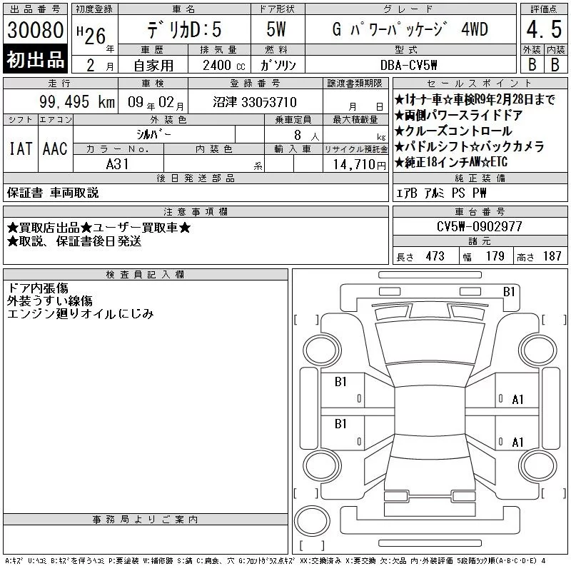 Mitsubishi DELICA D5 с аукциона Японии CAA Chubu лот № 30080