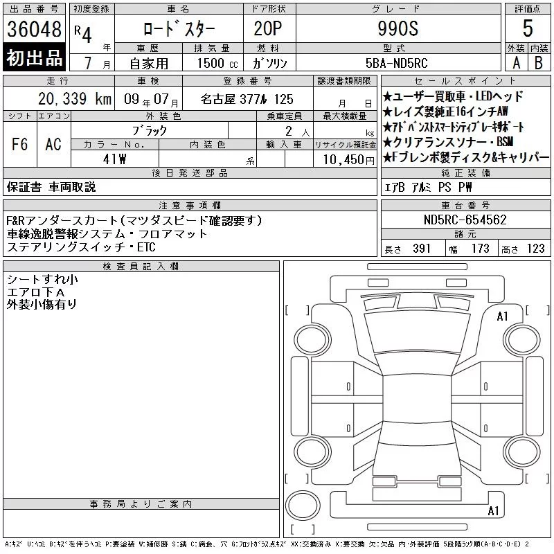 Mazda ROADSTER с аукциона Японии CAA Chubu лот № 36048