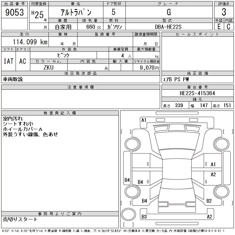 Suzuki ALTO LAPIN с аукциона Японии CAA Chubu лот № 9053