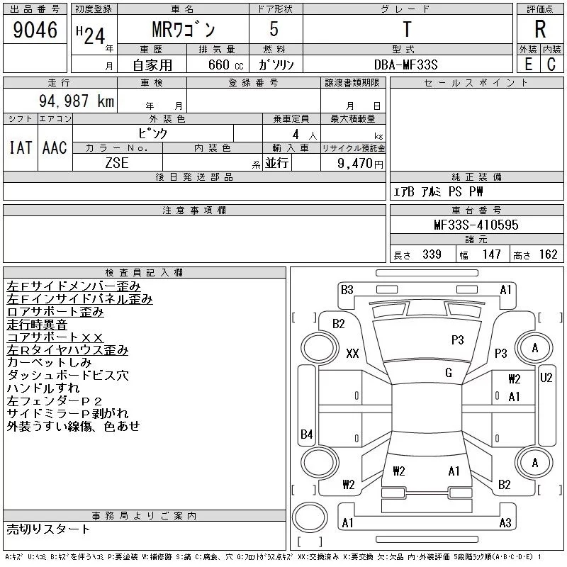 Suzuki MRWAGON с аукциона Японии CAA Chubu лот № 9046