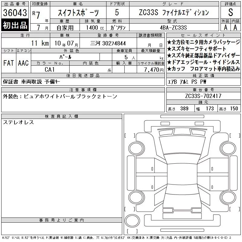 Suzuki SWIFT с аукциона Японии CAA Chubu лот № 36043