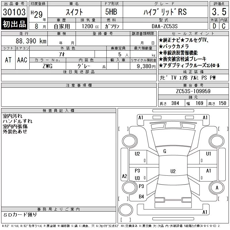 Suzuki SWIFT с аукциона Японии CAA Chubu лот № 30103
