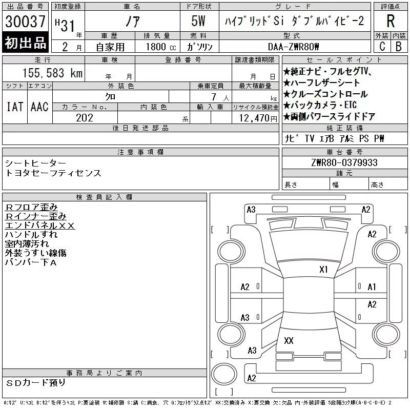 Toyota NOAH с аукциона Японии CAA Chubu лот № 30037