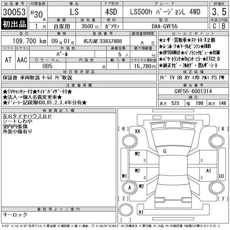 Lexus LS с аукциона Японии CAA Chubu лот № 30053