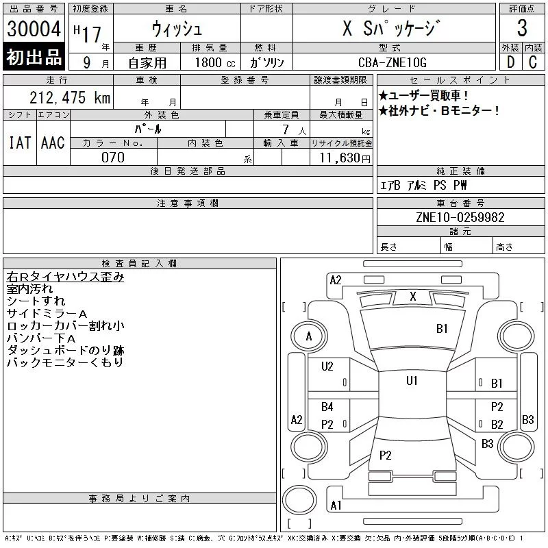 Toyota WISH с аукциона Японии CAA Chubu лот № 30004