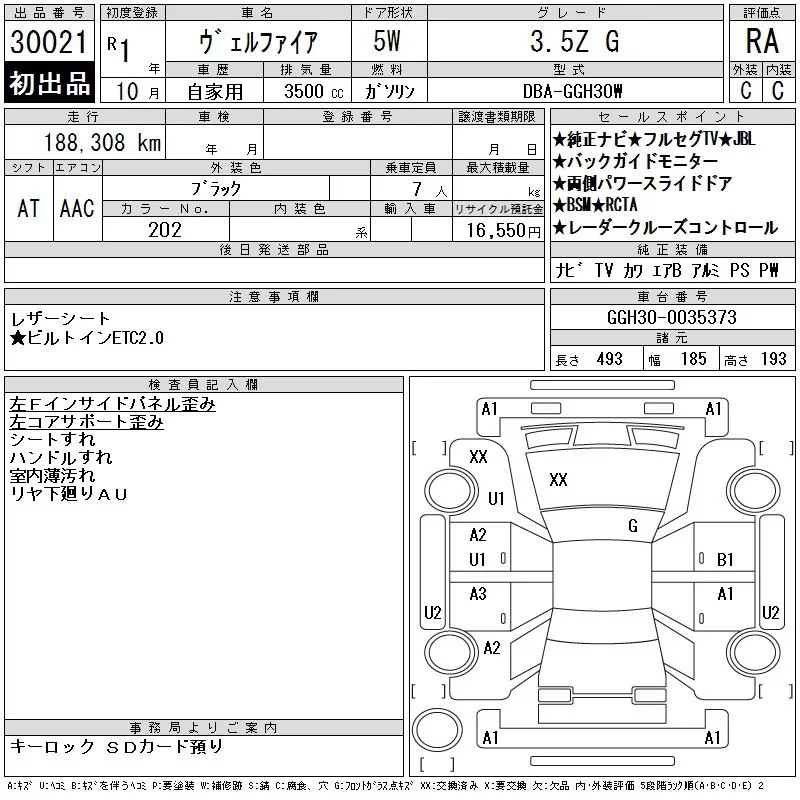 Toyota VELLFIRE с аукциона Японии CAA Chubu лот № 30021
