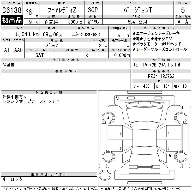 Nissan FAIRLADYZ с аукциона Японии CAA Chubu лот № 36138