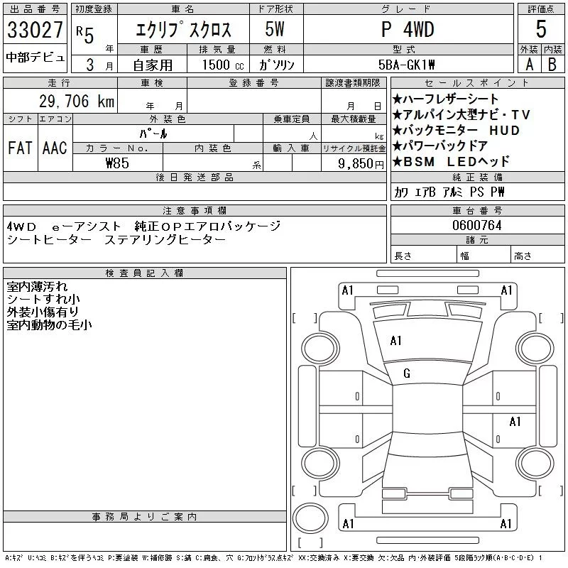 Mitsubishi ECLIPSE CROSS с аукциона Японии CAA Chubu лот № 33027