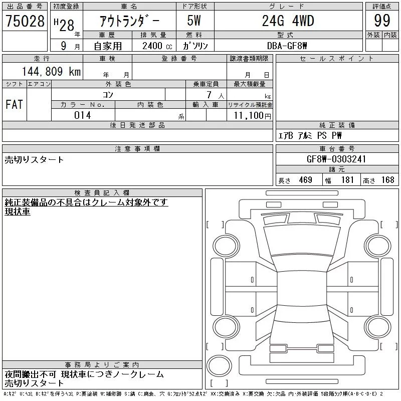 Mitsubishi OUTLANDER с аукциона Японии CAA Chubu лот № 75028