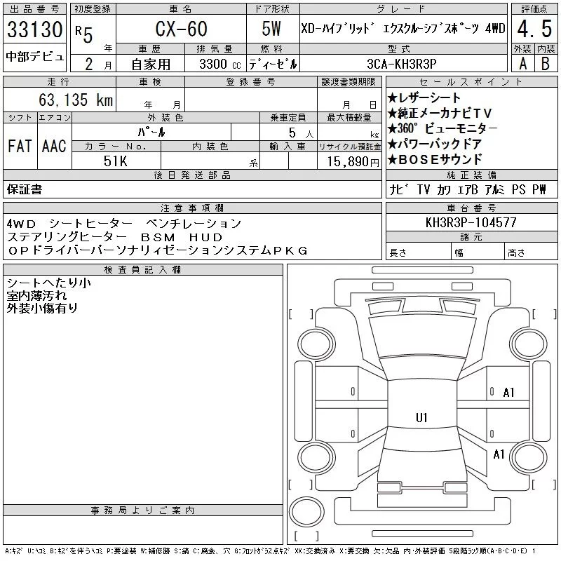 Mazda CX-60 с аукциона Японии CAA Chubu лот № 33130