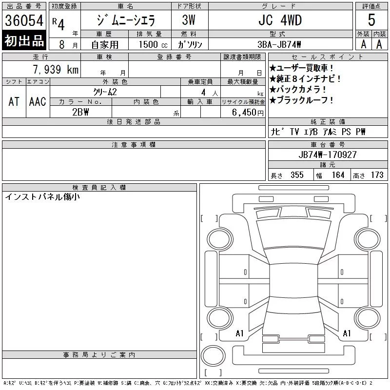 Suzuki JIMNY SIERRA с аукциона Японии CAA Chubu лот № 36054