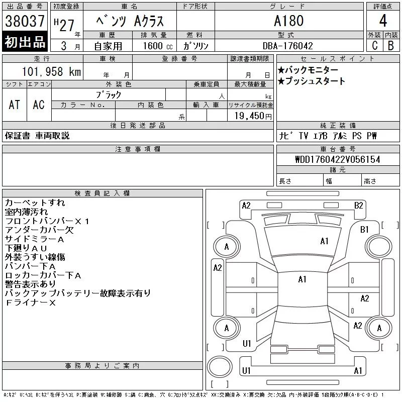 Mercedes-Benz A CLASS с аукциона Японии CAA Chubu лот № 38037