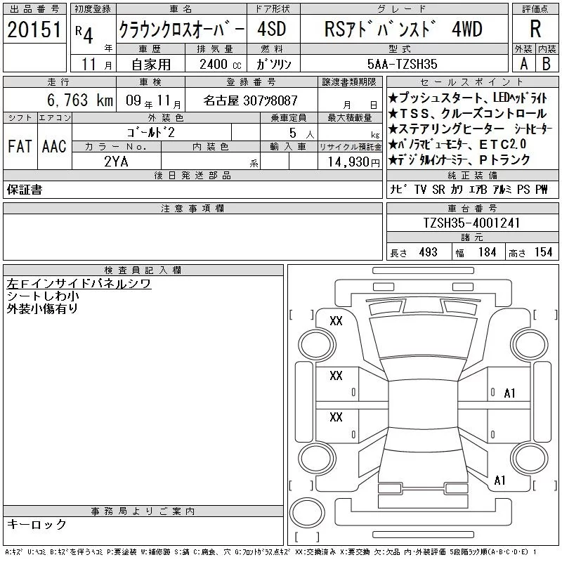 Toyota CROWN CROSSOVER с аукциона Японии CAA Chubu лот № 20151