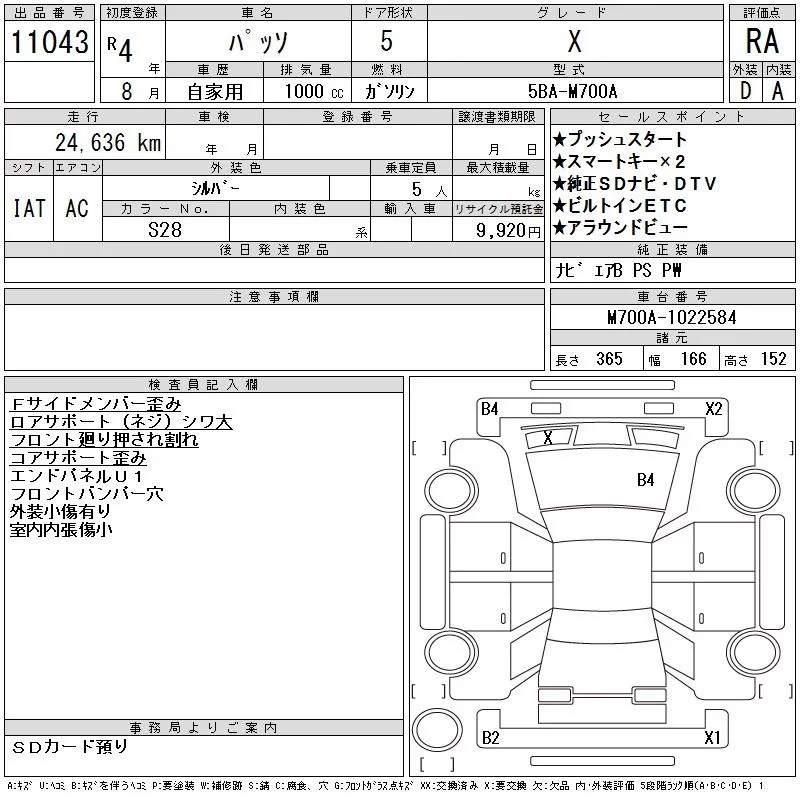 Toyota PASSO с аукциона Японии CAA Chubu лот № 11043