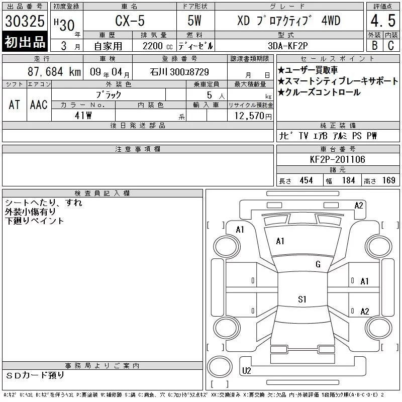 Mazda CX-5 с аукциона Японии CAA Chubu лот № 30325