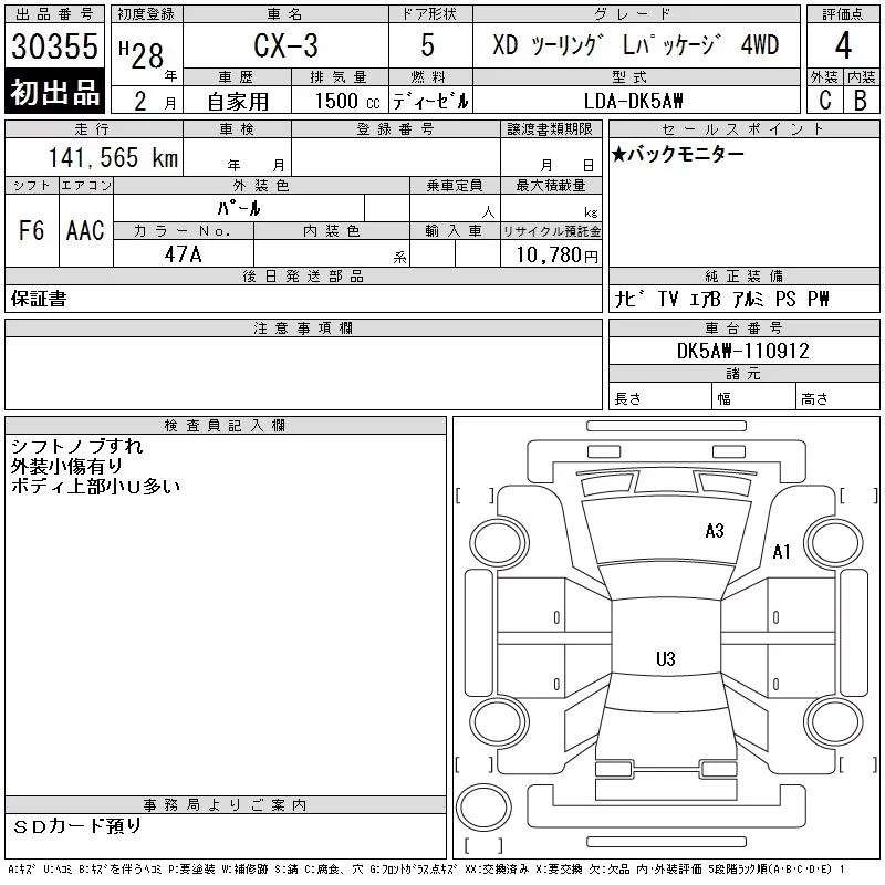 Mazda CX-3 с аукциона Японии CAA Chubu лот № 30355