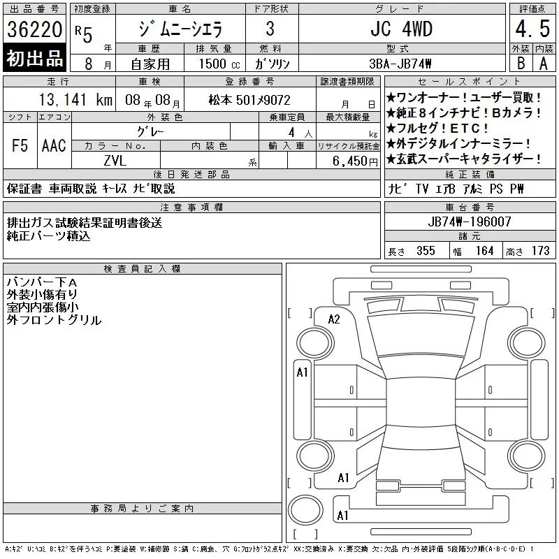 Suzuki JIMNY SIERRA с аукциона Японии CAA Chubu лот № 36220