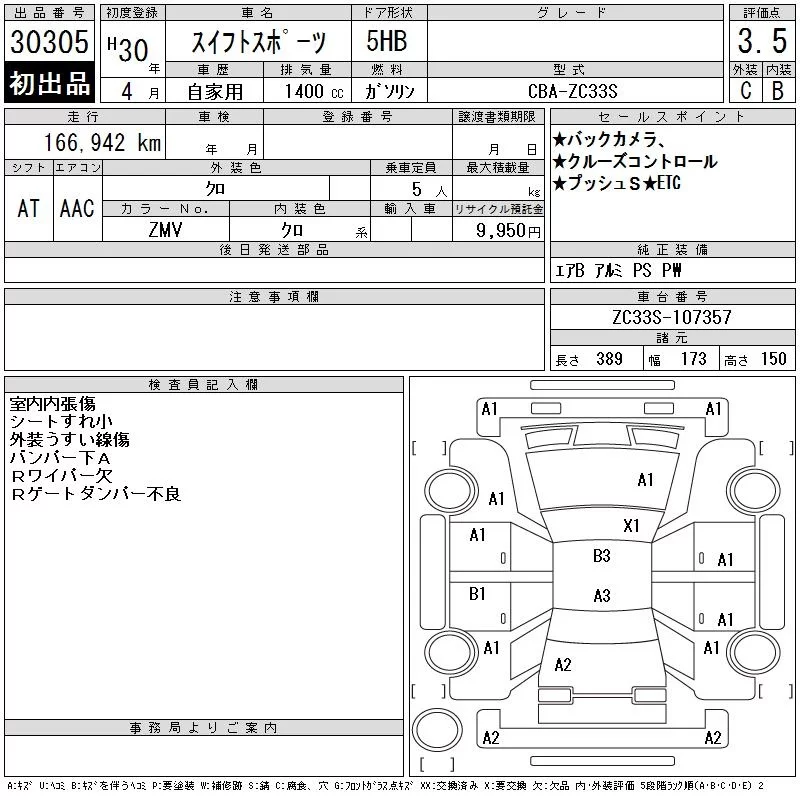 Suzuki SWIFT с аукциона Японии CAA Chubu лот № 30305